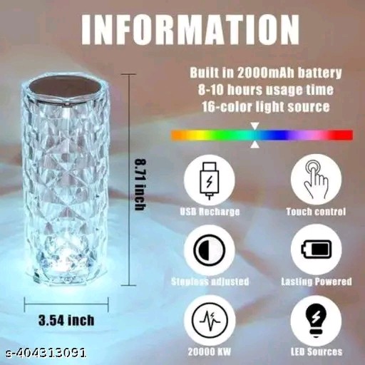 Name: Crystal Diamond Table Lamp Dimmable Touch And Remote Control Romantic 16 Color Diamond Table Lamps Usb Rechargable pack oof 1